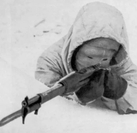 除了保暖之外,在白皚皚的雪地中隱蔽同樣也是個(gè)大問(wèn)題,早在1940年的蘇芬戰(zhàn)爭(zhēng)中,許多出身獵戶(hù)的芬蘭狙擊小隊(duì)便身披純白色的罩衣,利用滑雪板快速穿梭在林間,冷靜沉著的狙殺敵人,對(duì)于他們而言,那些身著臃腫綠色或褐色軍裝的蘇軍就是活靶子。