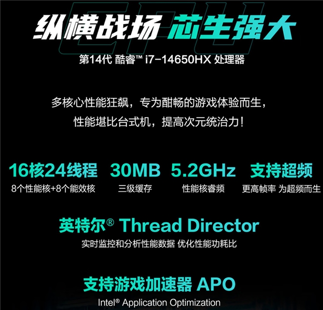 華碩天選6 Pro還搭載了酷睿i7-14650HX處理器,16核24線程規(guī)格混合架構(gòu),性能核睿頻可達5.2GHz,擁有30MB L3緩存,游戲性能卓越。搭配16GB DDR5 5600MHz高頻內(nèi)存與1TB PCIe 4.0 SSD的存儲組合,可輕松實現(xiàn)高幀團戰(zhàn)競技、場景迅捷加載、以及多任務(wù)協(xié)同并行,日常使用或激戰(zhàn)游戲均有優(yōu)異體驗。