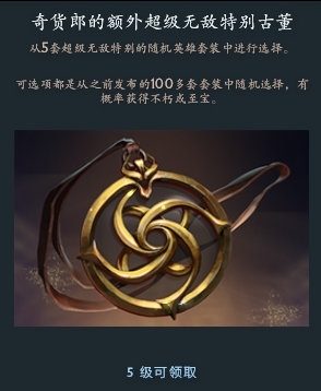 更令人驚喜的是,奇貨廊第二期活動同步上線,完成對局任務即可積累升級經(jīng)驗,贏得共計12個古董。與上次活動不同,本次的古董開啟后可以在5個飾品中選取心儀的飾品哦,更有機會贏得至寶、不朽等精美獎勵。