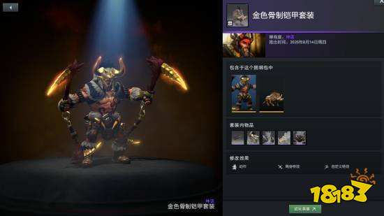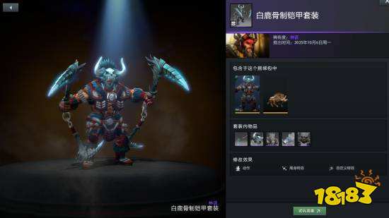 獸王套裝骨制鎧甲擁有三種額外款式可供打造,分別為白鹿、金色和棱彩,其中棱彩款式的武器部件棱彩暗紅鎖鐮為不朽品質(zhì),可改變獸王野性之斧的技能圖標(biāo)和特效。