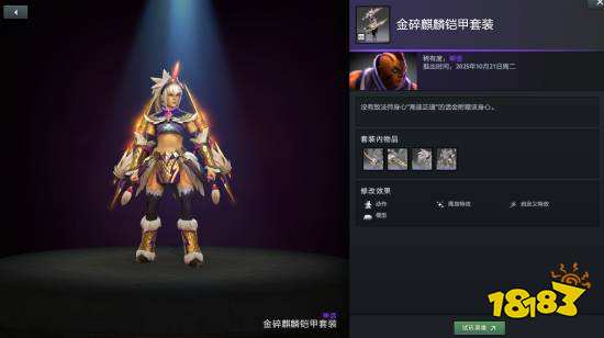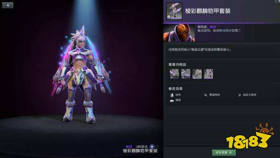 敵法師身心套裝麒麟鎧甲擁有三種額外款式可供打造,分別為冰霜?dú)埡?、金色和棱彩?/p>