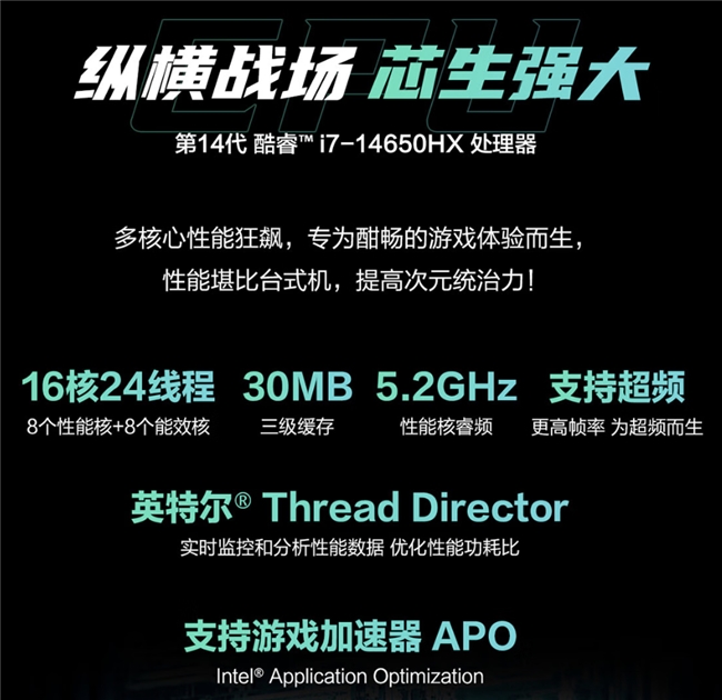 為與強大的GPU完美配合,華碩天選6 Pro配備性能強勁的英特爾酷睿i7-14650HX處理器。擁有16核24線程的高規(guī)格配置,最高睿頻可達5.2GHz。強悍的多核性能,能夠輕松應對現(xiàn)代游戲的復雜運算,確保在大型團戰(zhàn)或多任務并行處理時,系統(tǒng)依然保持流暢響應,幀數(shù)穩(wěn)定,為勝利奠定堅實的性能基礎。