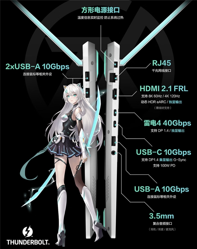 華碩天選6 Pro在外觀上延續(xù)了天選家族經(jīng)典的二次元設計語言,全新模具在細節(jié)上更為精致,A面設計簡約而不失機甲風范,極具辨識度。整機輕約2.25kg,薄至1.79cm,在一眾性能游戲本中堪稱“清流”,實現(xiàn)了獨一檔的便攜性,無論是穿梭于宿舍、教室還是差旅途中,都能輕松攜帶。機器支持180°開合,適應多種使用場景。內(nèi)置的90Wh大容量電池,配合100W PD快充技術(shù),不僅提供了遠超傳統(tǒng)游戲本的續(xù)航能力,也能快速補充電量,讓用戶擺脫電量焦慮,隨時隨地投入戰(zhàn)斗或創(chuàng)作。